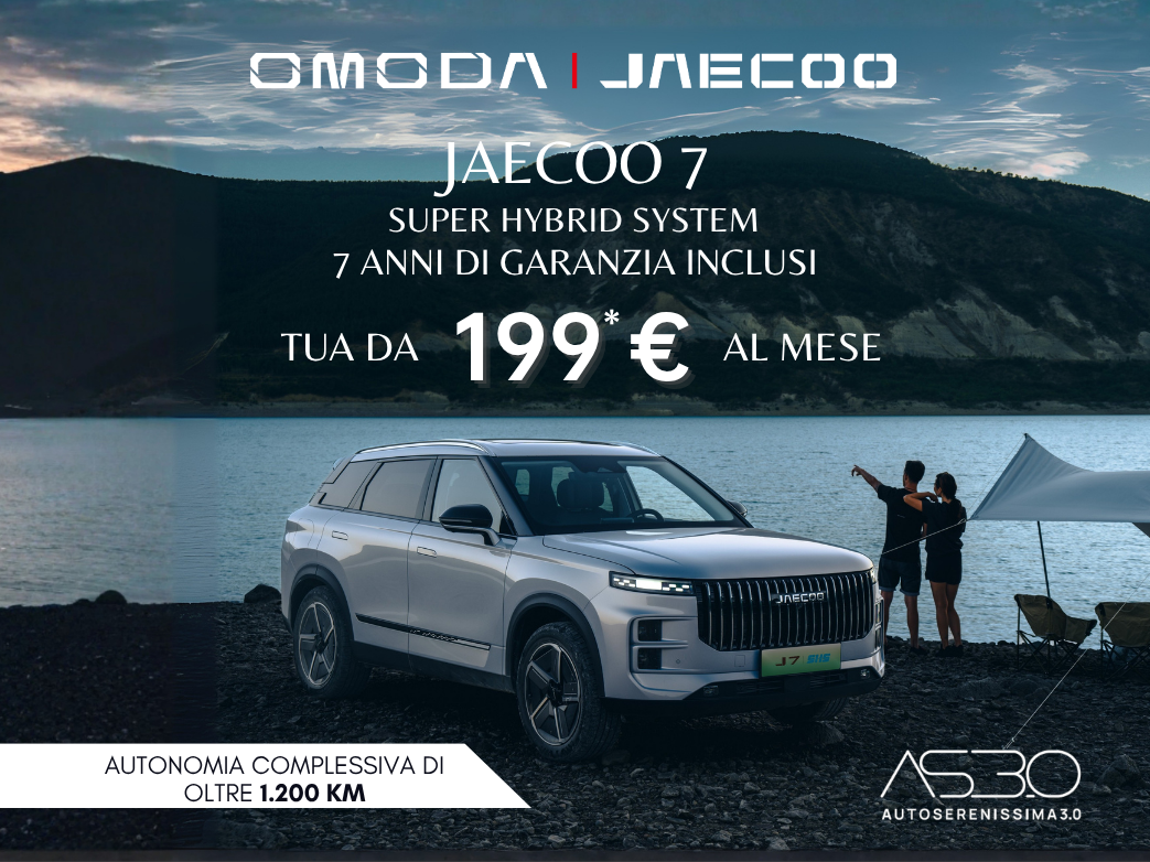 Jaecoo 7 Superhybrid Premium può essere tuada 199 € al mese con7 anni di garanziaOmodaIJaecooinclusi. Scoprila ora in pronta consegna!
