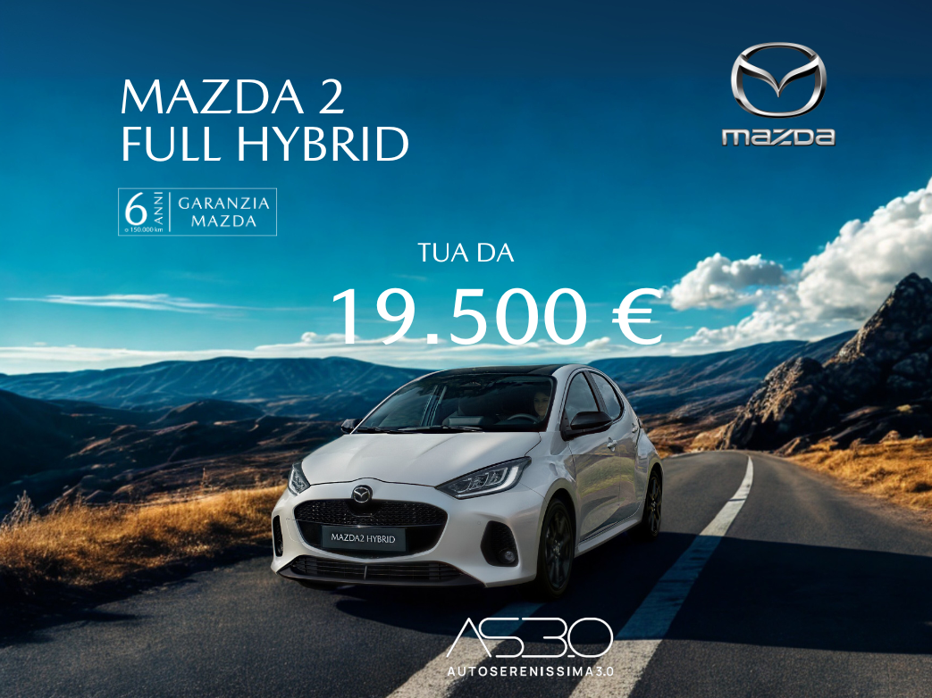 In caso di rottamazione: Incentivi Mazda fino a 5.490€ presso i concessionari Mazda aderenti all’iniziativa. Offerta valida fino al 31/10/2025. ***salvo condizioni e limitazioni indicate da contratto; chilometraggio annuale 10.000 km; eccedenza chilometrica € 0,10 per km. ** Annuncio promozionale. MAZDA2 HYBRID PRIME LINE Prezzo di listino €24.990. Esempio di finanziamento. Offerta valida solo con finanziamento Mazda Advantage e in caso di rottamazione: Prezzo promo: €18.990; anticipo €5.290,00; importo totale del credito €14.210,00, da restituire in 36 rate mensili ognuna di €148,76, ed un VFG pari alla maxi rata finale di €11.245,50, importo totale dovuto dal consumatore €16.808,88. TAN 4,99% (tasso fisso) – TAEG 6,82% (tasso fisso). Spese comprese nel costo totale del credito: interessi €1.991,86, istruttoria €399,00, incasso rata €4,50 cad. a mezzoSDD, produzione e invio lettera conferma contratto €1.00; comunicazione periodica annuale €1,00 cad.; imposta sostitutiva (o imposta di bollo): €36,52. Offerta valida presso i dealers aderenti, fino al 31/10/2025. Condizioni contrattuali ed economiche in “Informazioni Europee di Base sul Credito ai Consumatori” presso la rete di vendita e sul sito www.santanderconsumer.it, sez. Trasparenza. Salvo approvazione di Santander Consumer Bank.